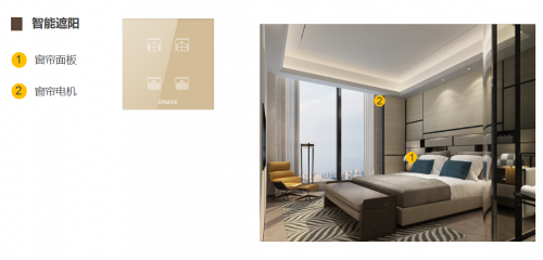 智能遮阳系统则为生活增添便捷,业主可通过窗帘面板或移动设备远程控制窗帘开关,纱帘还自带停电手拉、手拉启动、遇阻即停功能,即便遇到突发情况也能轻松操作。